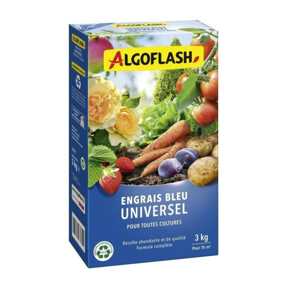 Engrais complet granulé. S’utilise pour toutes les cultures : légumes, petits fruits, arbres fruitiers et d’ornement, rosiers, fleurs et gazon. Avec magnésie, bore et zinc pour favoriser la floraison, une récolte abondante et renforcer le coloris des fleurs. Sa couleur bleue permet un meilleur contrôle de l’épandage.