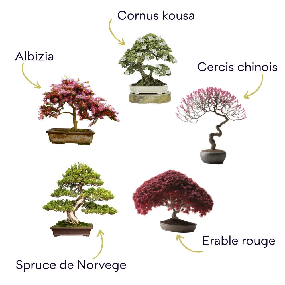 – 5 sachets de graines de bonsaïs : red mapple, chinese cercis, juniperus, liquidambar, norway spruce