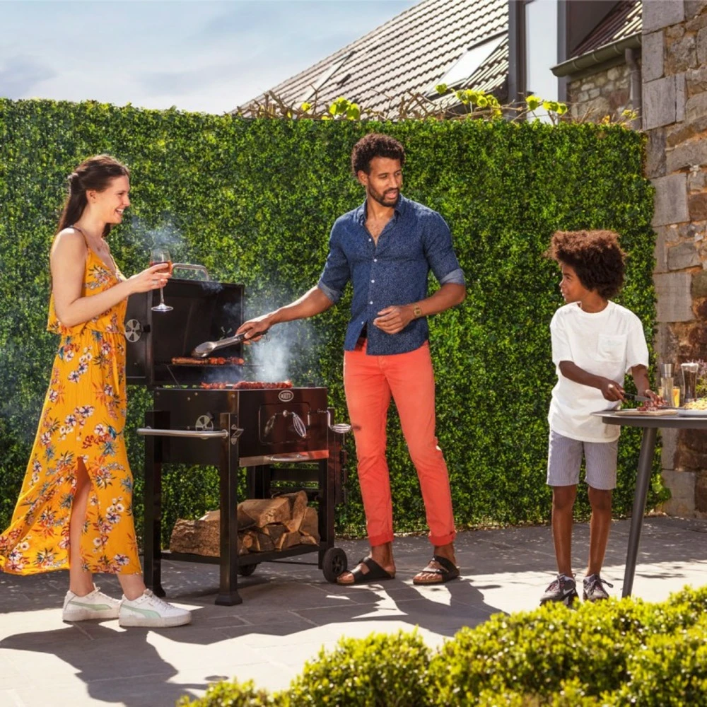 Faites respirer tous les espaces sans effort grâce à nos murs végétaux artificiels imitation naturelle ! chic et champêtre, le mur végétal est une solution d’occultation ou d’ornement jouant la carte du naturel. Ce produit est aussi bien adapté aux jardins, terrasses et balcons. Il est facile à poser sur des panneaux rigides de clôture ou sur des murs et ne nécessite aucun entretien. Conçus par carré de 1 mètre, les murs végétaux peuvent se clipser entre eux à l’infini : laissez votre créativité s’exprimer ! grande qualité de fabrication et résistance aux uv et à l’eau. garantie : 5 ans. cinq modèles pour répondre à tous les styles : le modèle amazone : foisonnant, dense et luxuriant avec des fleurs fuchsia la version fougère : très verte et proche des plantes que l’on trouve en europe la version liseron : champêtre et composée de trèfles, de petites feuilles et de fleurs blanches esprit « campagne » le modèle lierre : classique et imitant différents types de lierre pour un effet « plante grimpante » le modèle tropical : ambiance jungle tropicale avec des herbes hautes, des feuillages, et quelques fleurs rouge vif monté sur support plastique, sans métaux lourds et non toxique. attaches vendues séparément.